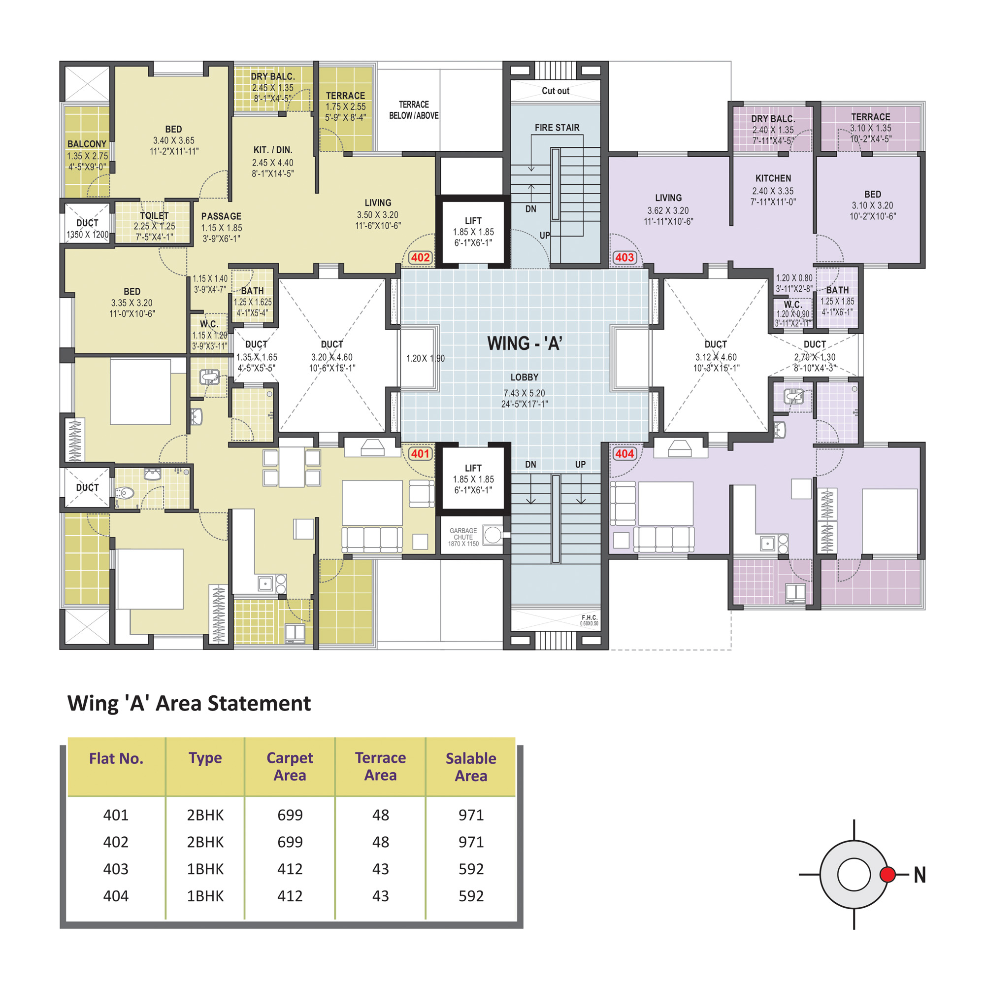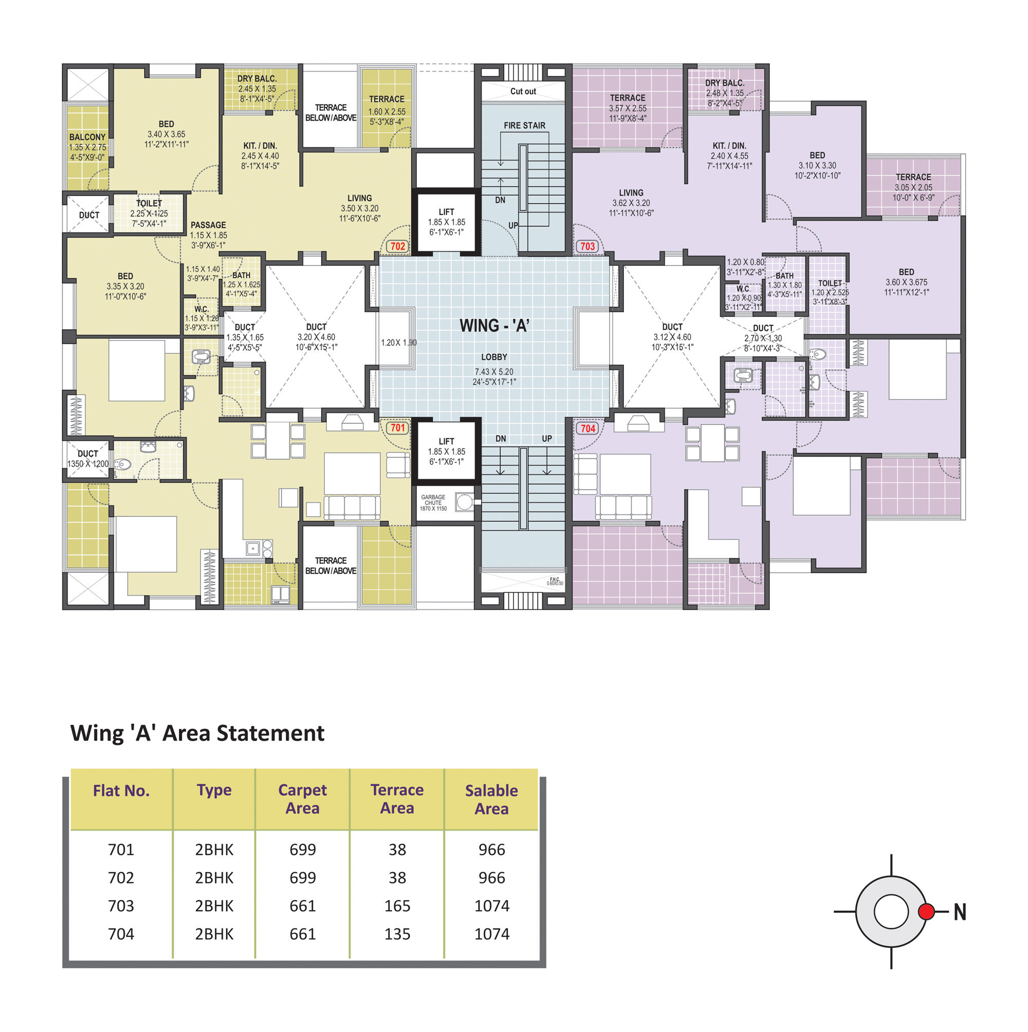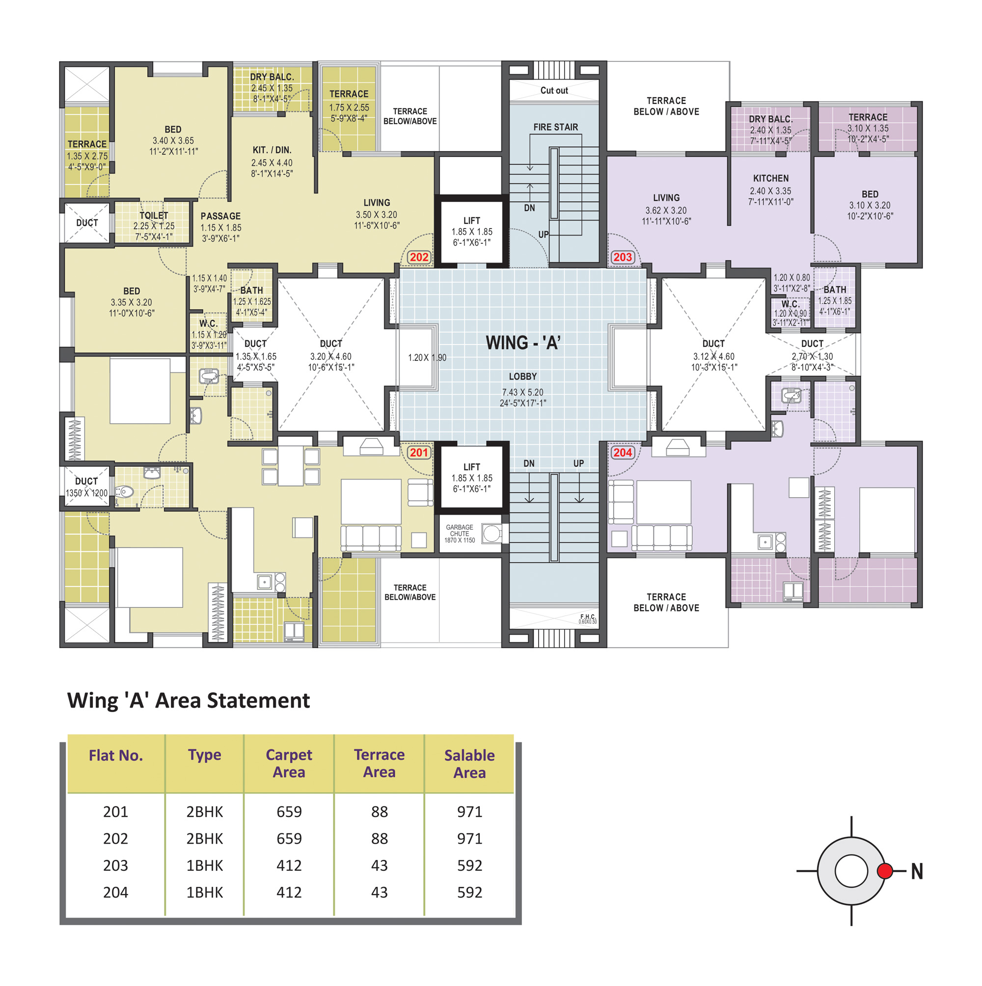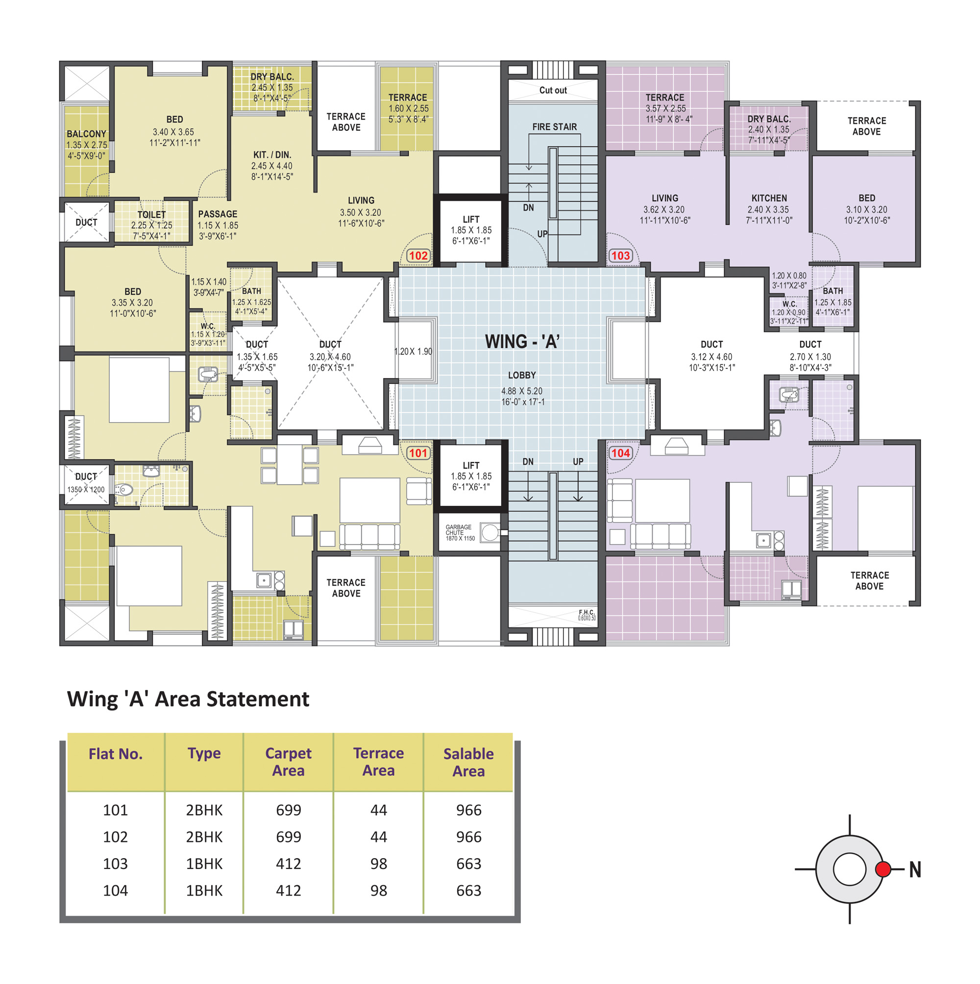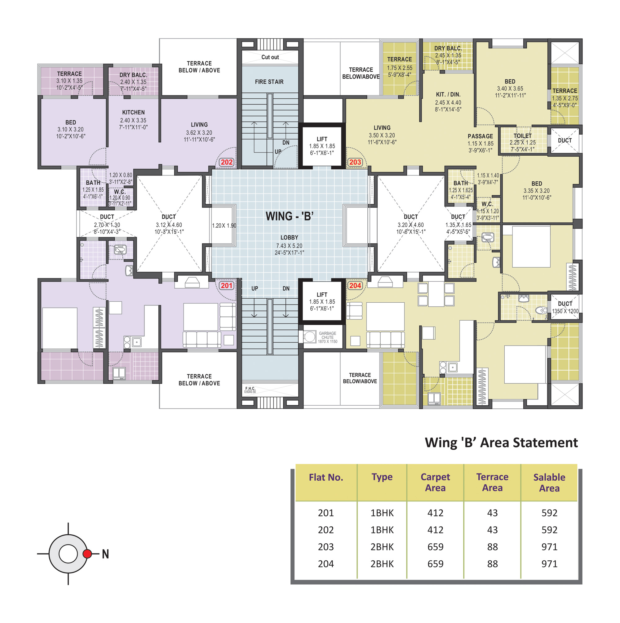 - Anti-Skid ceramic flooring for the attached terrace, dry balcony & toilets