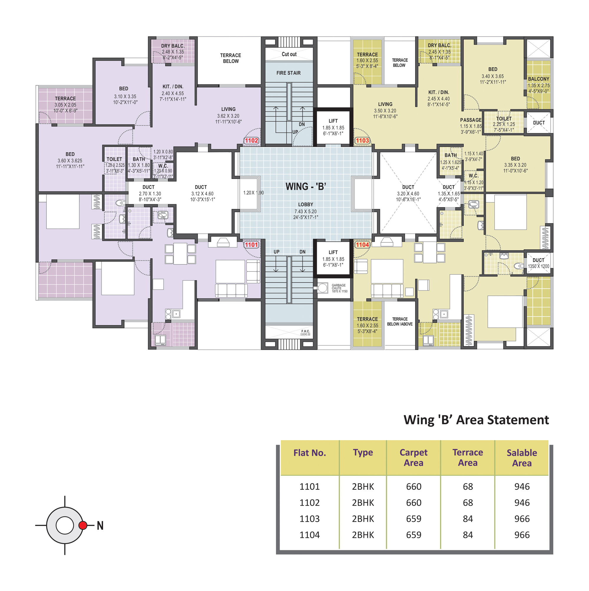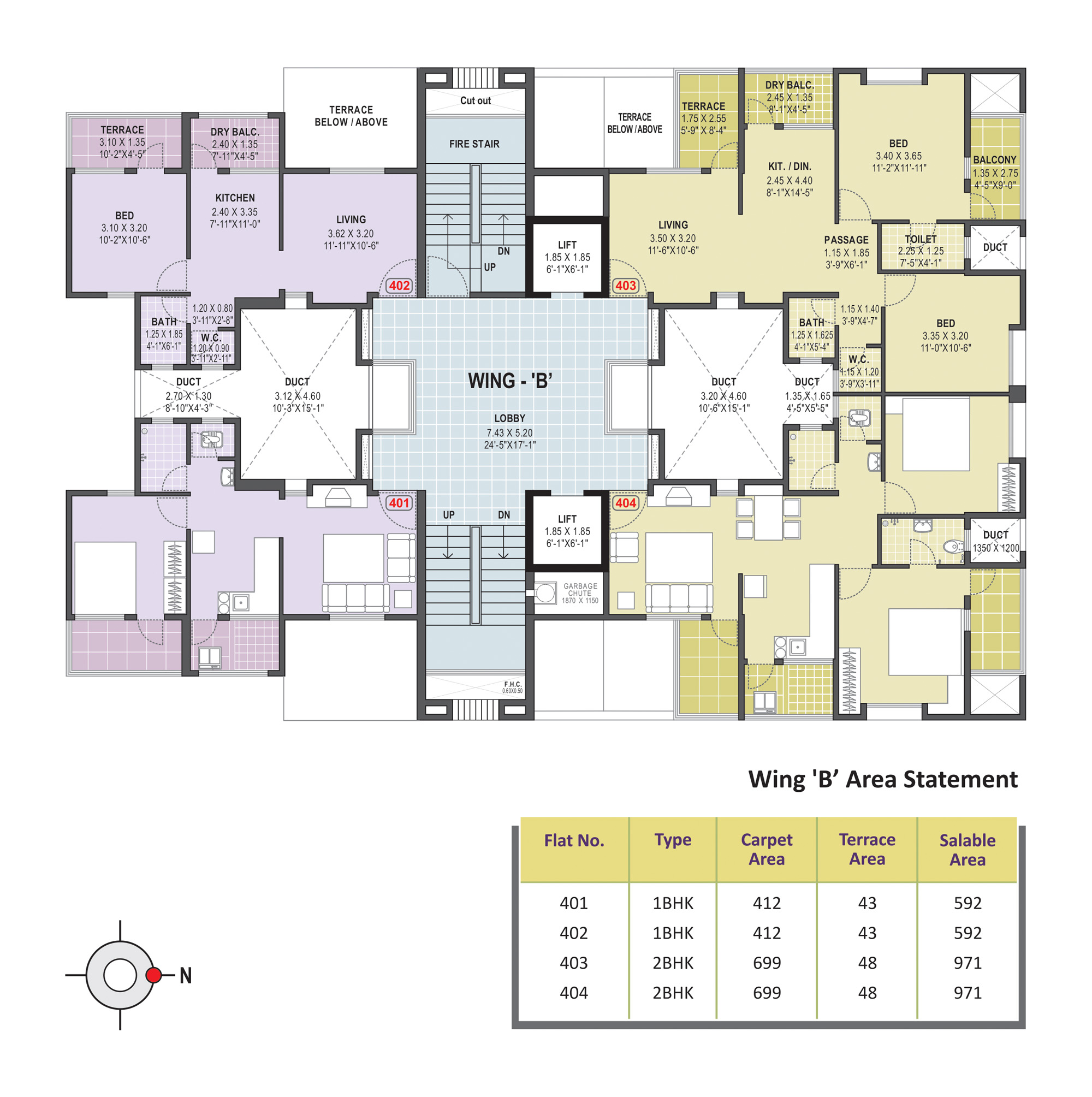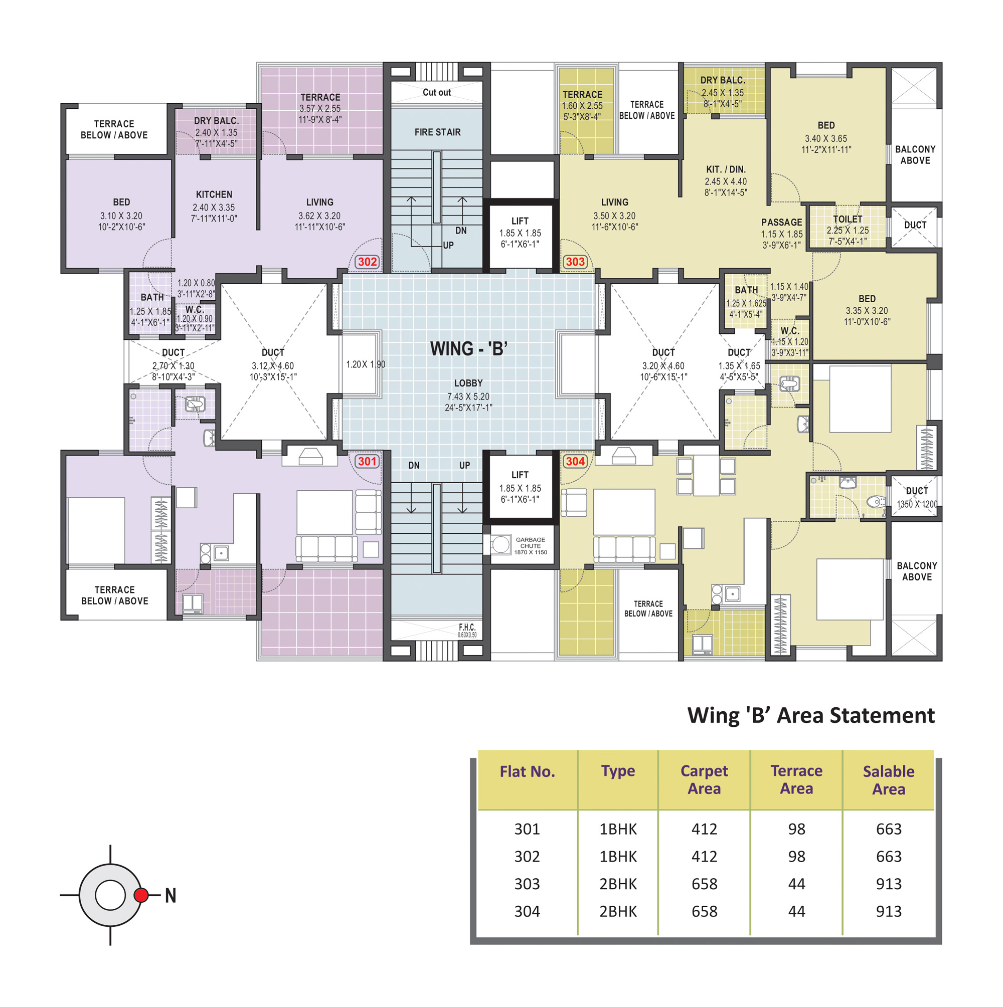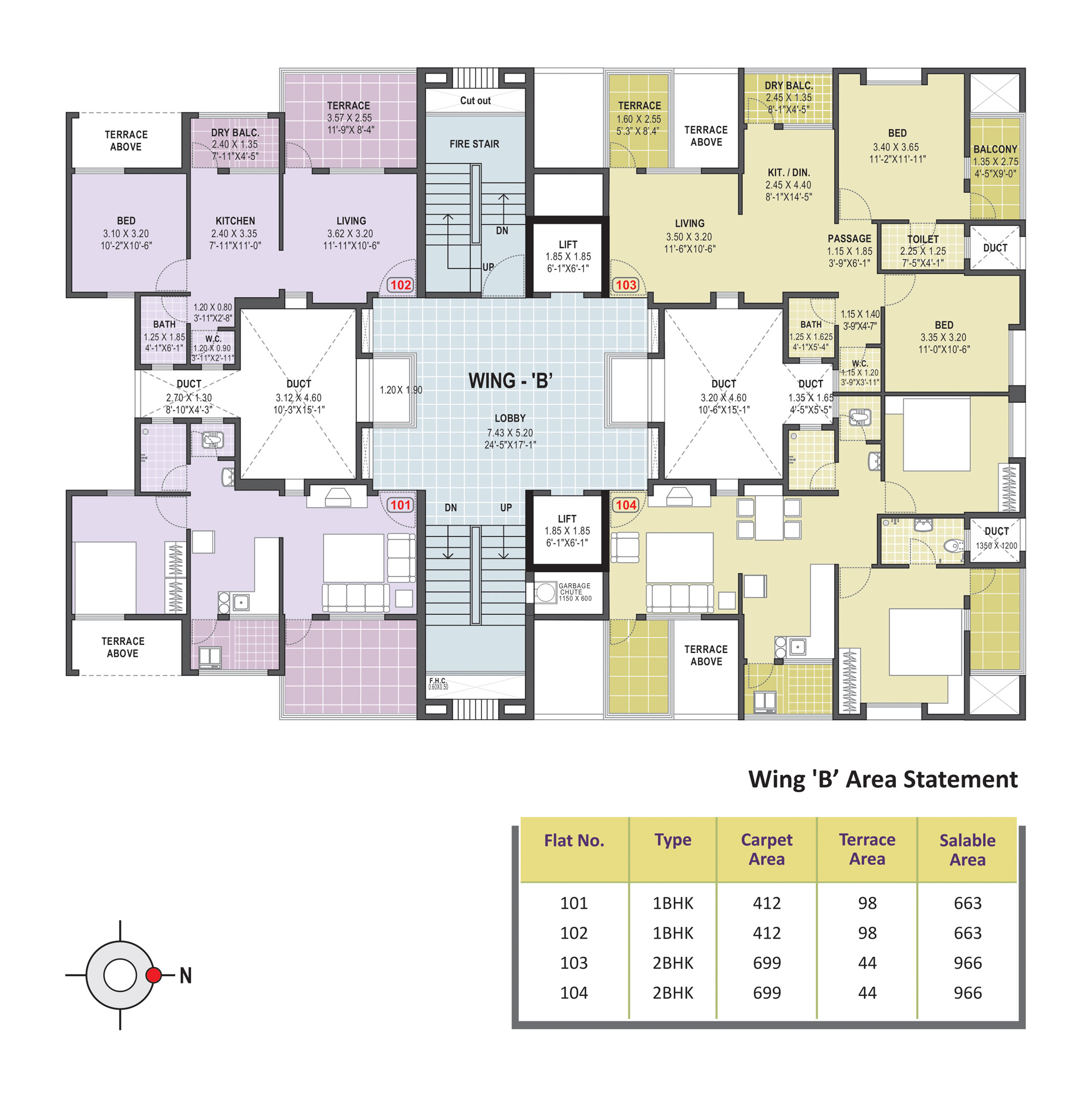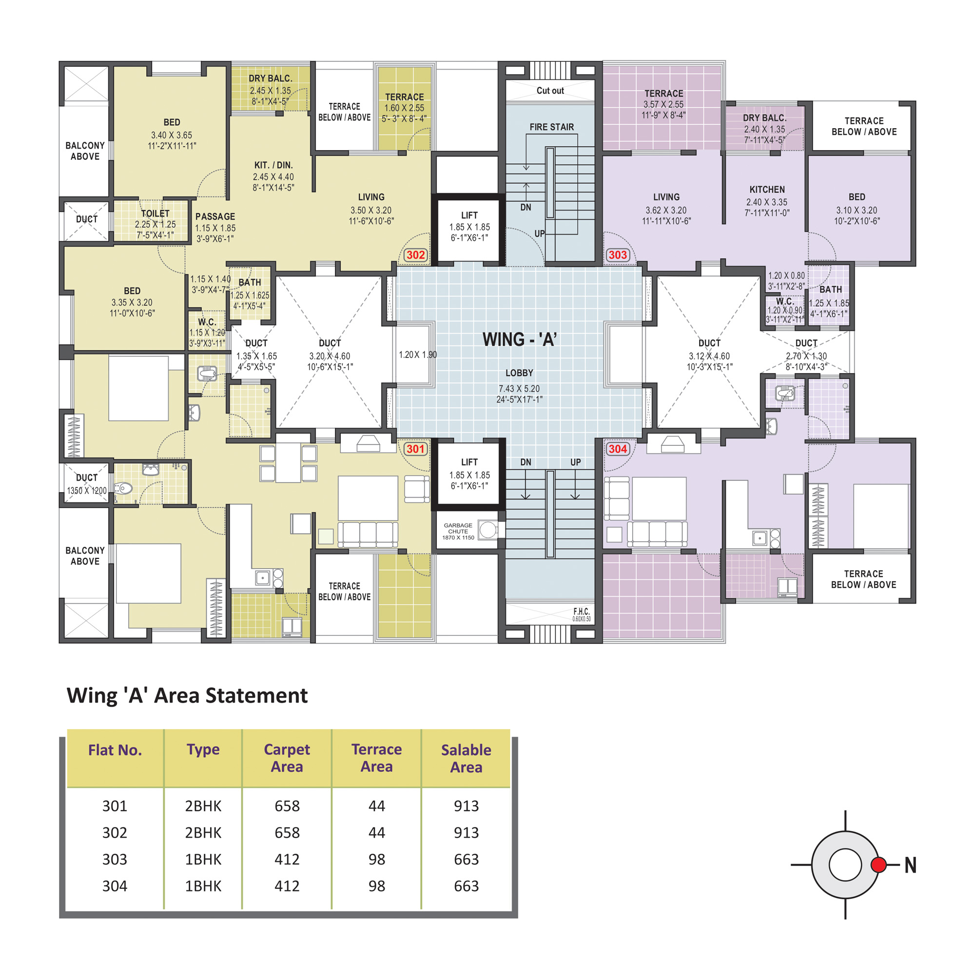 - Anti-Skid ceramic flooring for the attached terrace, dry balcony & toilets